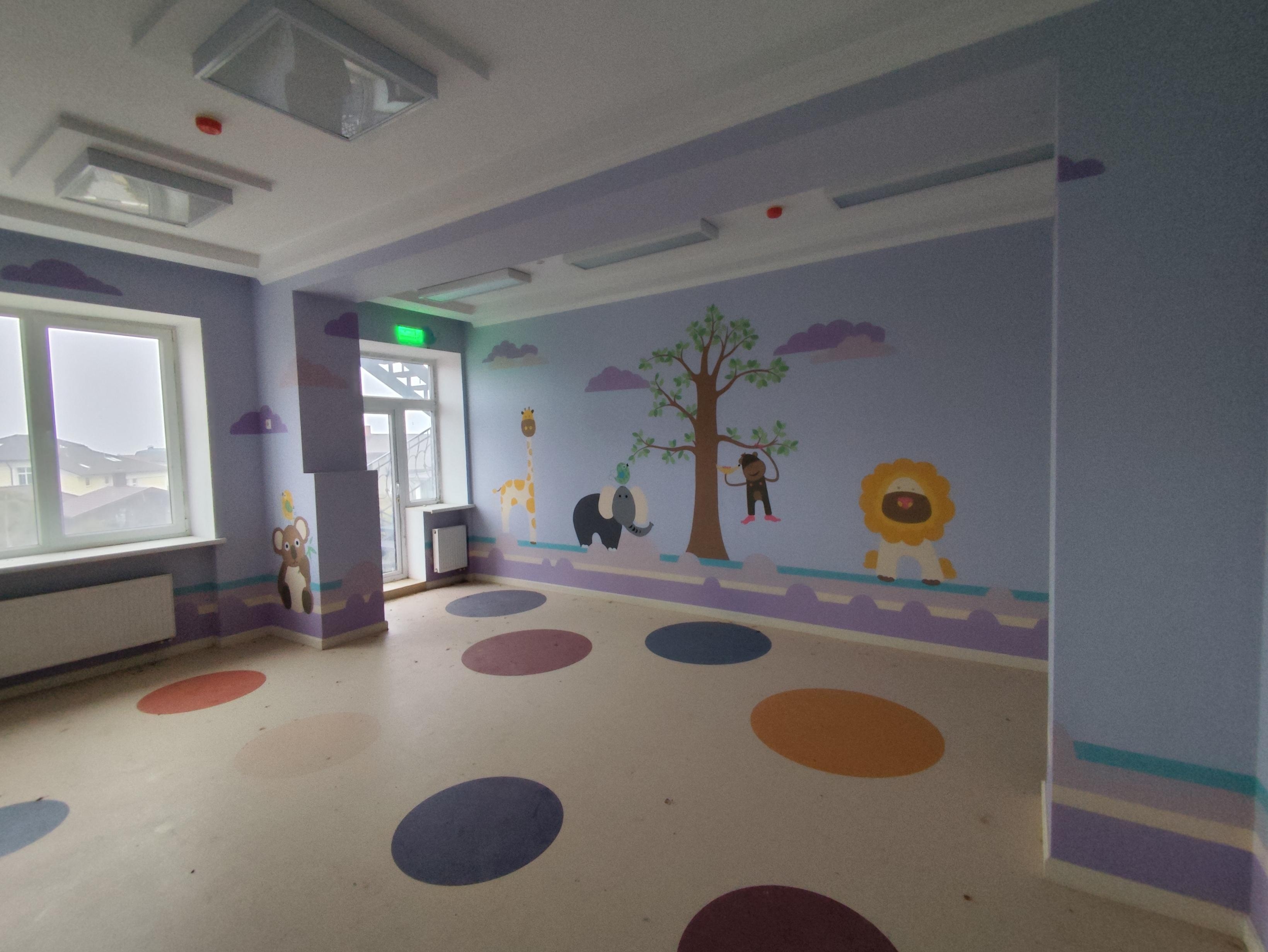 • На первом этаже располагается ясельная группа, детский бассейн с раздевалками, комната для персонала.